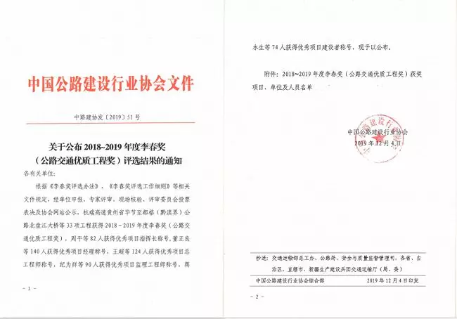 本年度,公司加大科研投入和创新力度,发挥高新技术企业的优势和模范带头作用,参与的课题《皖江地区夹灰白色条带状边坡破坏变形及处治技术研究》获得安徽省公路学会科技进步一等奖;获得中国公路建设行业协会科技进步三等奖5项;选送的QC成果获2019年度全国市政工程建设优秀质量管理小组三等奖,公司获得中国市政2019年度“全国市政工程建设QC小组活动优秀企业”称号。公司设计院报送的《中派河大桥BIM应用项目》荣获全国“第四届建设工程BIM大赛”三等奖,《肥西县产城融合示范区综合管廊BIM应用项目》荣获安徽省“第三届建筑信息模型(BIM)技术应用大赛”基础设施类三等奖。