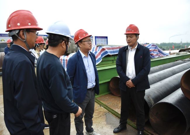 在黄浒河特大桥建设现场,程轶一行详细查看了工程进展,认真听取了项目负责人关于工程概况、建设进度及重难点问题的汇报,就施工进度、质量控制、安全环保等关键环节与项目负责人进行了深入交流,并对项目及团队建设给予充分肯定。