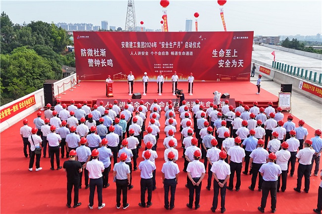 人民网宣城6月3日电(记者苗子健)6月3日上午,安徽建工集团所属15个单位主要负责人、生产安全分管负责人及生产、安全部门负责人、施工主业单位项目经理代表100余人,在建工建投集团宣泾高速一期01标项目举办2024年“安全生产月”活动启动仪式。