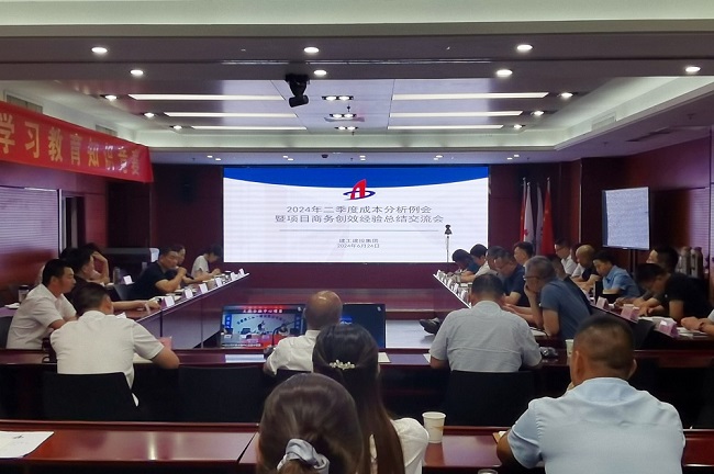 6月24日下午,公司2024年二季度成本分析例会暨项目商务创效经验总结交流会在安建大厦8楼会议室召开。公司董事、财务总监章兴红,党委委员、副总经理王秋华出席会议,党委委员、副总经理孙伟主持会议。