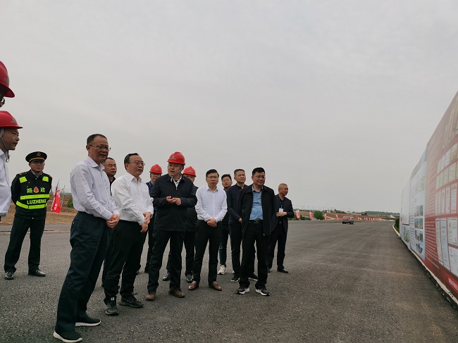 4月27日下午,安徽省交通运输厅党组书记、厅长聂爱国一行赴来六高速04标项目调研指导,公司党委书记、董事长任杰,党委委员、副总经理江仲明,二分公司党总支副书记、总经理张立兵等参加调研。