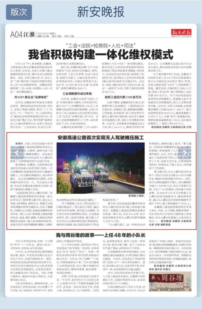 近日,新安晚报深入建工建投集团宣泾高速01标项目施工现场,就该项目运用“无人摊压机群施工”智能化方式作业进行深入报道。