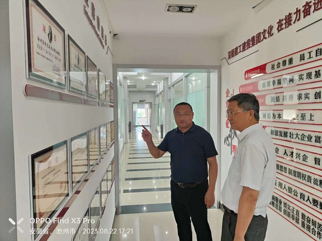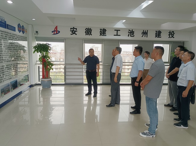 8月22日,池州市人大常委会主任金庆丰、贵池区人大常委会副主任郭新泽一行到池州建投调研。池州建投领导班子参加调研。