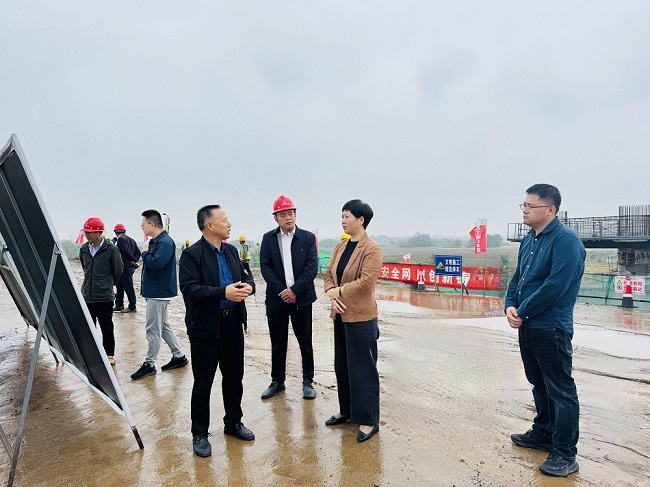 童少艳一行深入黄浒河特大桥施工现场,实地查看了项目进展情况,听取项目负责人关于项目概况及工程进度的详细汇报。童少艳对项目当前取得的阶段性成果表示肯定,并强调,一是要狠抓安全监管,盯紧节点、加强调度,优化施工组织,提升工程质量;二是各部门要保持密切联动、强化监管保障,力争项目早竣工、早投产、早见效。