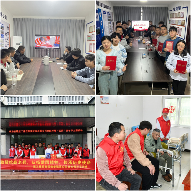 设备租赁公司团支部组织开展以“致敬抗战老兵,弘扬爱国精神,传承历史使命”为主题的五四青年节活动。全体参赛选手观看《安徽建工集团庆祝“五一”国际劳动节“五四”青年节表彰大会》,会后,团员青年们在会议室以混凝土、路面、周转材、设备管理等各项知识内容展开激烈比拼,最终根据答题分数高低及交卷时间排名颁发荣誉证书。