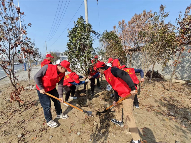 松山污水处理厂项目组织青年团员前往松山街道参与道路两侧植树绿化活动,积极配合帮助绿化工人铲土栽树。