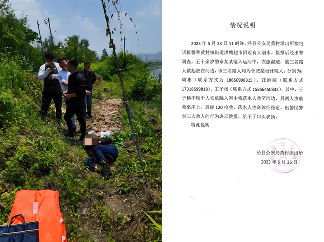 近日,城乡设计总院测绘事业部青年职工王子杨、汪继圆、周彬等三人在泾县黄村镇,见义勇为、奋力抢救溺水村民的事迹在当地被传为佳话。