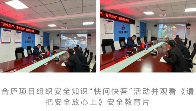 同时,各项目还开展了丰富多彩的主题活动。合周高速项目召开青年安全课堂,亳蒙高速项目组织安全消防应急演练,蚌埠G206项目开展主题辩论赛,合庐项目组织安全生产知识“快问快答”活动,进一步提高了分公司广大青年职工的安全生产意识。