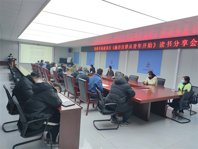 徐淮阜高速项目组织开展读书分享会,分享了云南省社会科学院马克思主义研究院博士——刘雪璟的文章《廉洁自律从青年开始》,不断增强拒腐防变的自制力,守住拒腐防变的“五道关”。