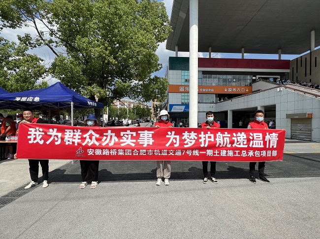 中考期间,每天早上7点半,合肥市轨道交通7号线项目志愿者来到合肥168中学考点执勤,配合交警做好考点周边交通疏导工作,维护好考点周边交通秩序,保障考生顺利进入校园。同时,在考场外发放扇子、矿泉水、湿纸巾、藿香正气液、风油精等物资,全力以赴助力中考。