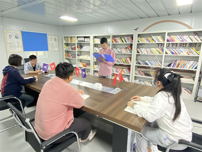 阜淮高速03标项目举办“青春之歌,咏赞百年”诗歌朗诵会。《青春中国》《无关年龄,青春万岁》《青春是什么》《致青春》《青春的赞歌》……团青们用精美的优秀作品、精致的情感设计,精心的语言表达为建团百年献礼,展现了项目团青们斗志昂扬的的青春之音。