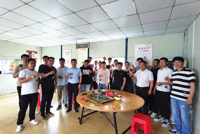 项目部全体员工还一起参与包粽子活动,项目大厨传授包粽子的技巧,一边示范粽子的包法一边讲解端午节的由来和风俗习惯,不一会,形状各异的粽子就呈现出来,现场欢声笑语,其乐融融。本次活动营造出浓郁节日氛围,促进“家文化”建设,为项目大干快上,更好地推进项目建设创造有利条件。
