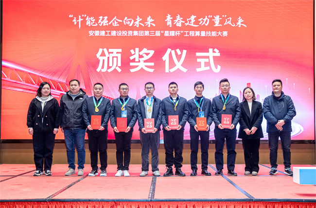 “计”能强企向未来,青春建功“量”风采。12月12日,公司团委组织的第三届“星耀杯”工程算量技能大赛在安徽水利和顺大酒店(合肥店)圆满举办,安徽省建设建材工会(省住建厅文明办)四级调研员邱亮出席开幕仪式并宣布大赛开幕,建工控股党委组织部(人力资源部)副部长、团委书记聂猛莅临现场并作指导讲话。公司党委副书记干戈,公司党委委员、副总经理、总工程师陈莘,公司党委委员、纪委书记王学梅,公司党委委员、副总经理王秋华,公司党委组织部(工会、团委)、成本核算部、市场开发与投资部相关负责人,所属各单位党组织书记,团组织负责人,一线青年职工等100余人参加活动。