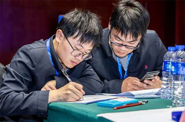 大赛分为“个人理论+团体实操”2个比赛项目,考察对路基、桥梁、隧道等重点施工部位图纸的工程量计算。其中团体最终成绩按30%个人成绩和70%团队实操成绩累加计分,得分相同时,实操考试用时较短的记为优胜。比赛期间各队伍选手积极配合,充分发挥了个人专业能力和团队协作能力,全身心投入比赛当中,展现出较高的职业素养和能力水平。
