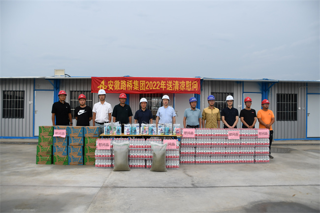 8月11日,公司党委书记、董事长任杰,党委委员、副总经理、总工程师陈莘,党委委员、副总经理江仲明,工会主席邵康一行莅临黄千高速02标项目开展送清凉慰问活动。