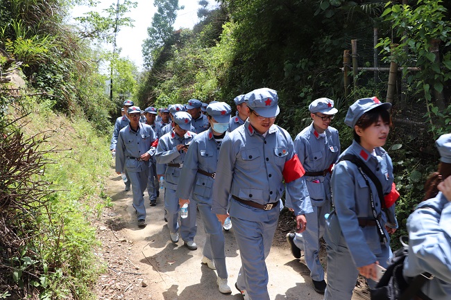 最后,组织青年团员重走红军路、重温革命史,沿着崎岖的山路,踏着坚定的步伐,年轻的“红军队伍”体会着红军革命之艰辛,接受着革命精神的洗礼,传承着红色基因,彰显了青年的活力与朝气。