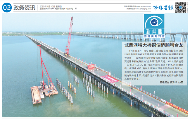 4月8日,建工建投S20长丰至固始高速公路霍邱至皖豫界段工程路基路面02标城西湖特大桥钢便桥顺利合龙贯通。人民网、《市场星报》深入项目一线展开报道,稿件登上人民网安徽频道首页。