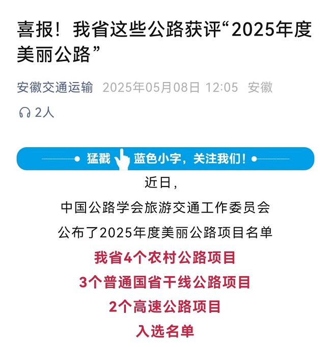 近日,中国公路学会旅游交通工作委员会公布了“2025年度美丽公路项目名单”,安徽省4个农村公路项目、3个普通国省干线公路项目、2个高速公路项目入选名单。由建工建投集团承建的G4012溧宁高速黄山至千岛湖安徽段成功获评!